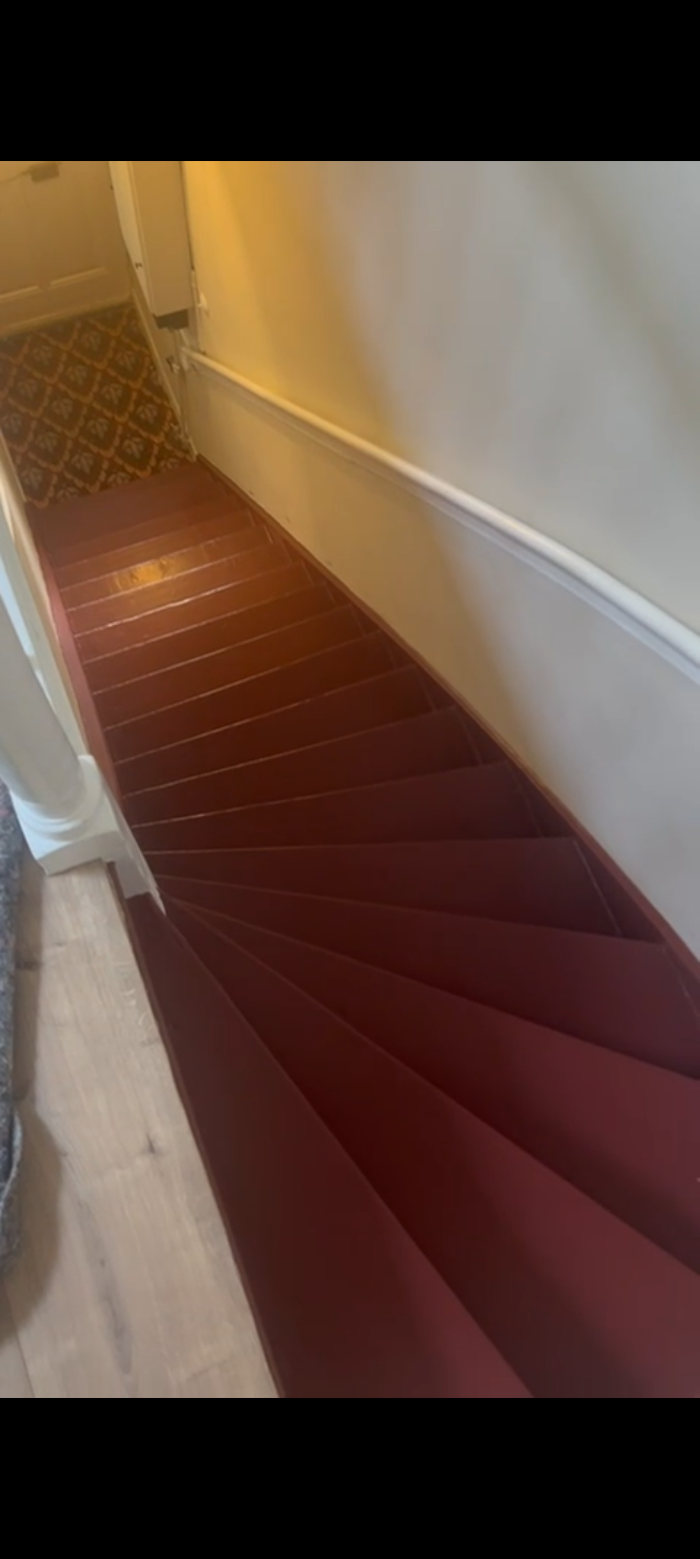 De bestaande trap is grondig gereinigd, geschuurd en waar nodig hersteld. Beschadigde treden en naden zijn vakkundig bijgewerkt om een egale en stevige basis te creëren voor het schilderwerk.
